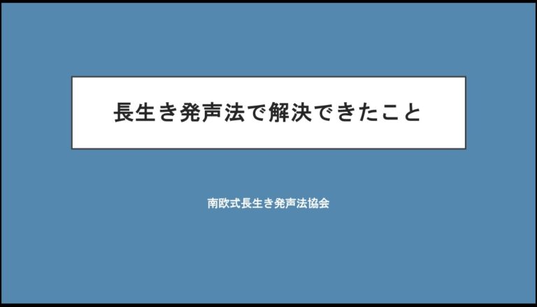 副鼻腔炎を患う方が南欧式長生き発声法を体験し、症状が改善したことを報告します。体験後にアンケートを実 […] -
