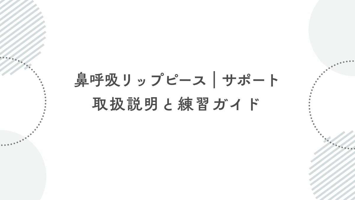 本ページは「鼻呼吸リップピース」の取扱説明・練習ガイド・安全上の注意をまとめたサポートページです。